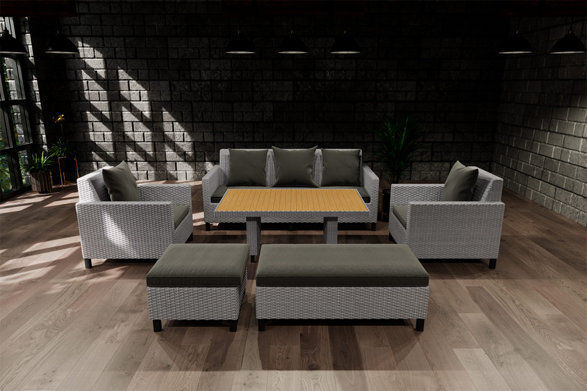 Материал Polyrattan, полиэстр, лиственница, FlexyFoam, сталь